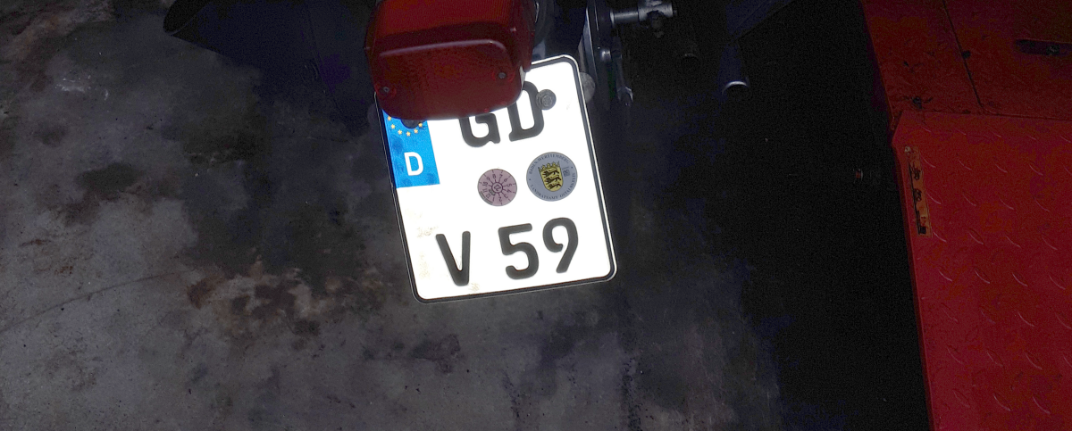 Übrigens muss ich alter Heidenheimer hier zähneknirschend etwas zugeben: Bei der Kennzeichenvergabe ist man hier deutlich bikerfreundlicher als in Heidenheim. Natürlich haben der eine Buchstabe und die zweistellige Zahl den Sinn, dass das Nummernschild möglichst schmal bleibt. Allerdings schränkt das halt auch wiederum die Vergabe von Wunschkennzeichen für Guffeln ein.
